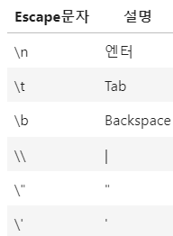 print("a\"b", 'a"b') #같은 따옴표를 사용할 때만 escape 문자 사용