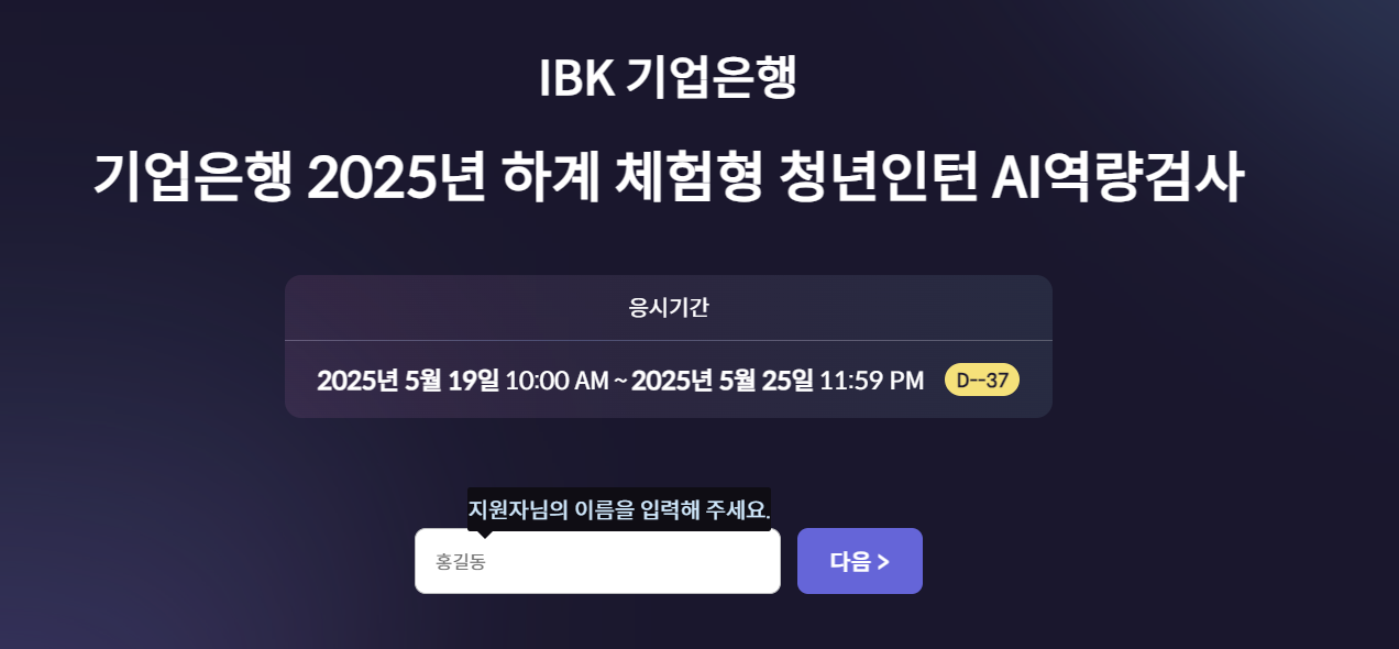2025년 IBK 기업은행 하계 체험형 청년인턴