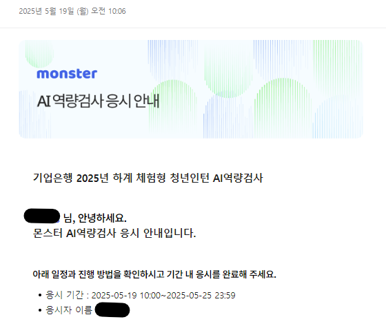 서류를 낸 모든 사람들은 AI면접을 봤어야했는데요, 이번 AI면접은 '몬스터 역량검사'를 통해 진행되었습니다.
