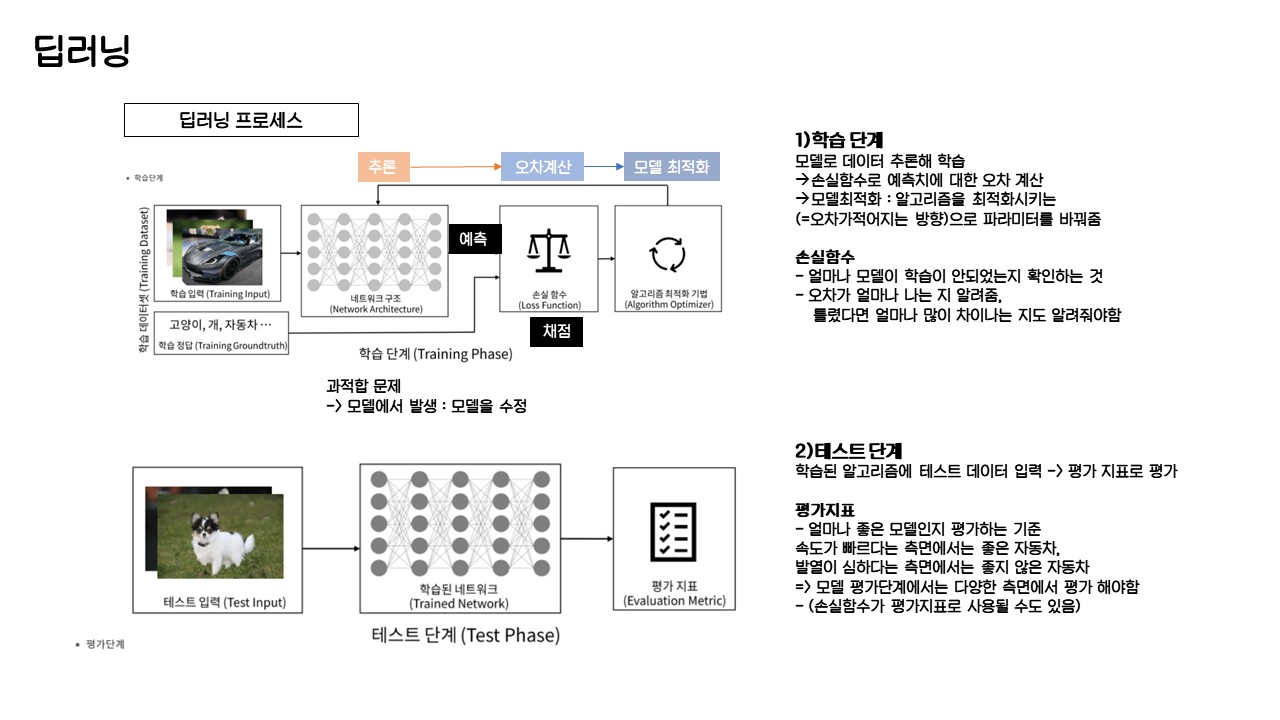 - 딥러닝은 인공신경망 알고리즘을 기반으로 하는 머신러닝의 분야 (머신러닝 > 딥 러닝)