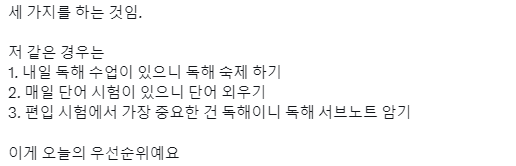 - 지난 주에 화,수,금,토,일에 모두 약속이 있었다. 이전에 잡아둔 선약 + 즉흥적으로 잡힌 약속들이라서 기하급수적으로 늘었다. 일요일에는 과외까지 했어야했다. 약속을 잡으면 막상 만나는 시간은 2시간 남짓이지만 , 그 시간을 위해 이동하는 시간 + 1시간씩하다보면,,,,, 수업을 복습하고 자습하고 그럴 시간이 확실히 '물리적'으로 적다는 생각이 들었다. 부트캠프에 있는데 보상심리로 너무 많은 활동을 그냥 방치하는 건 아닌가? 라는 생각이들었다. 심지어 목,금에 새벽 3시에 자는 바람에 지각 + 금요일에는 병가를 냈다.