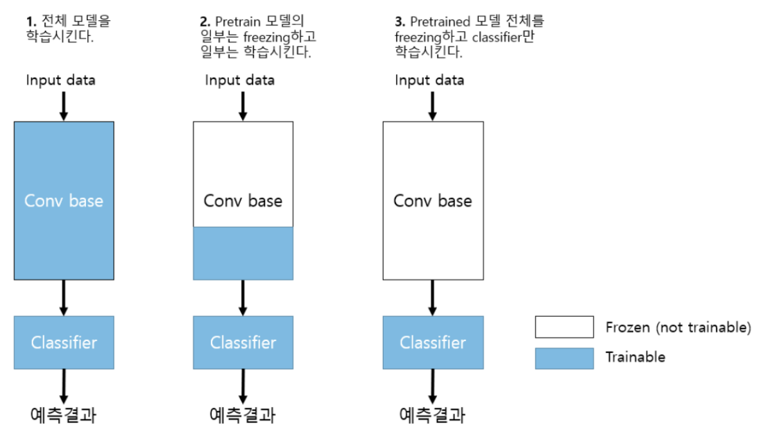 fine tuning - Feature Extractor 재학습한다. 3가지 전략이 존재