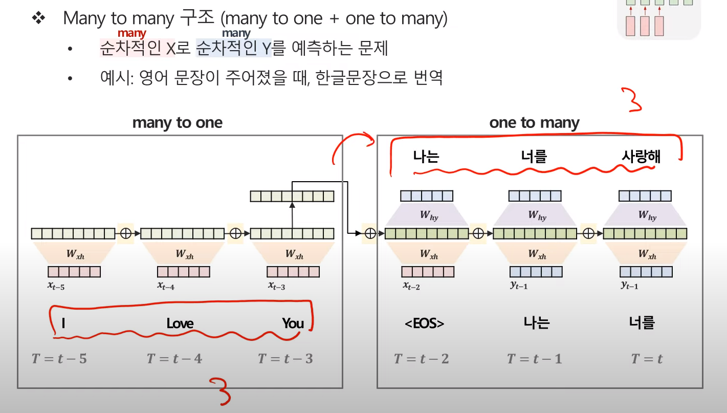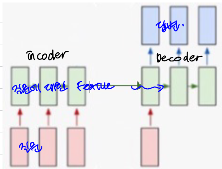 - encoder는 번역 대상문장을 입력받아 처리하고 decoder는 번역문장을 생성