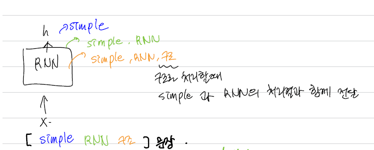 - 시작(초기) hidden state로 입력하지 않으면 0이 들어간다.