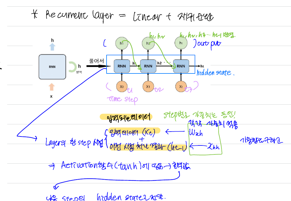 - time step : Sequential 데이터 처리에서 순서대로 처리할 때 각각의 단계