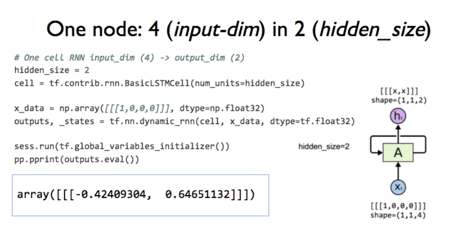 hidden size를 2로 설정 -> 입력데이터가 dim이 4였어도 output은 2로 반환