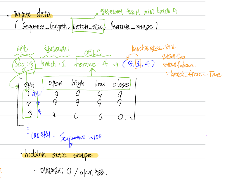 - batch_first=True 로 설정하면 (**batch_size**, seq_len, feature_shape) 순이 된다.