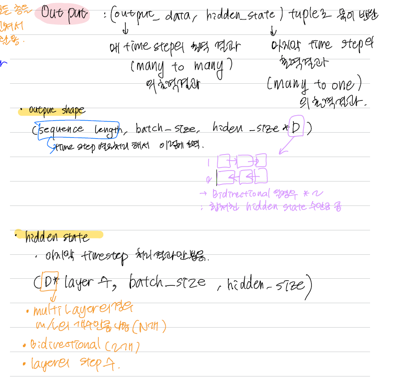 - batch_first=True 로 설정하면 (batch_size, seq_len, feature_shape) 순이 된다.