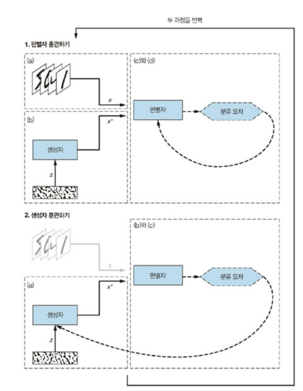 Discriminator 훈련 -> Generator 훈련 반복