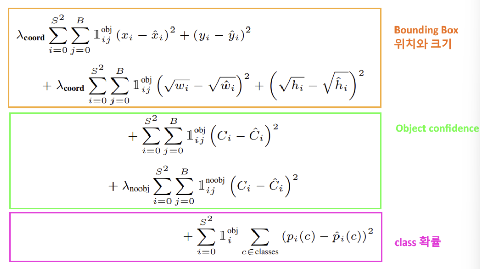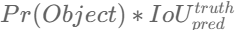 - Confidence: 물체가 있을 확률 * IoU점수(Ground truth와 예측bbox간의 겹치는 부분의 넓이)