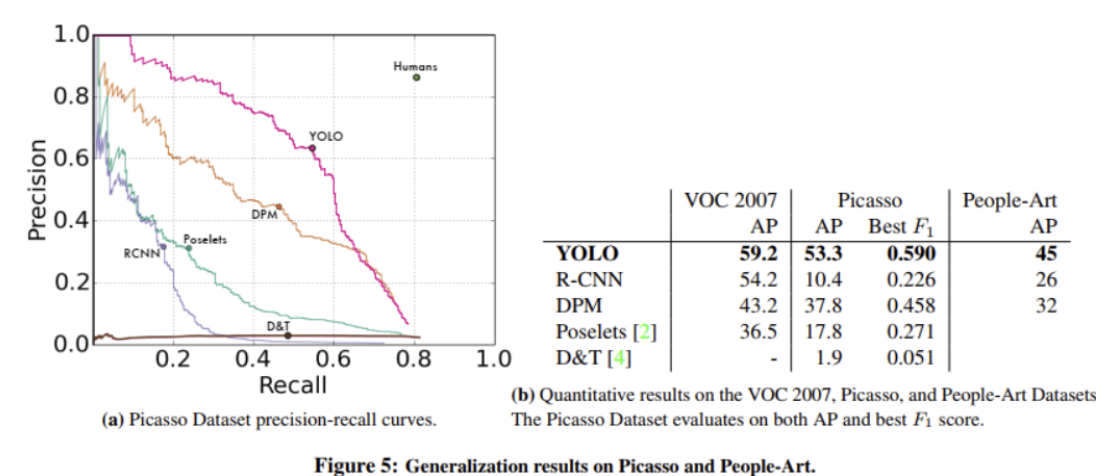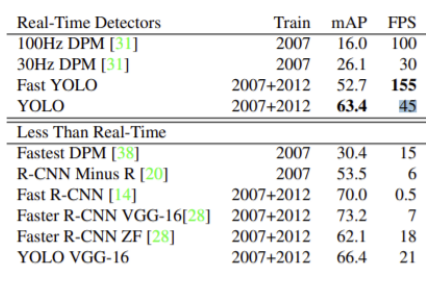 mAP(성능) - 최신 모델이 50~70대로(DPM은 기존모델) 성능이 훨씬 좋아진 것을 볼 수 있음.
