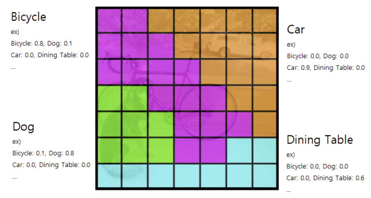 1단계 : 전체 이미지를 S X S 의 grid로 나눈다. (S: 7)