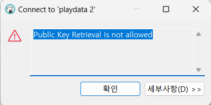 문제 : MySQ을 DBeaver에 연결하려고했는데 Public Key Retrieval is not allowed